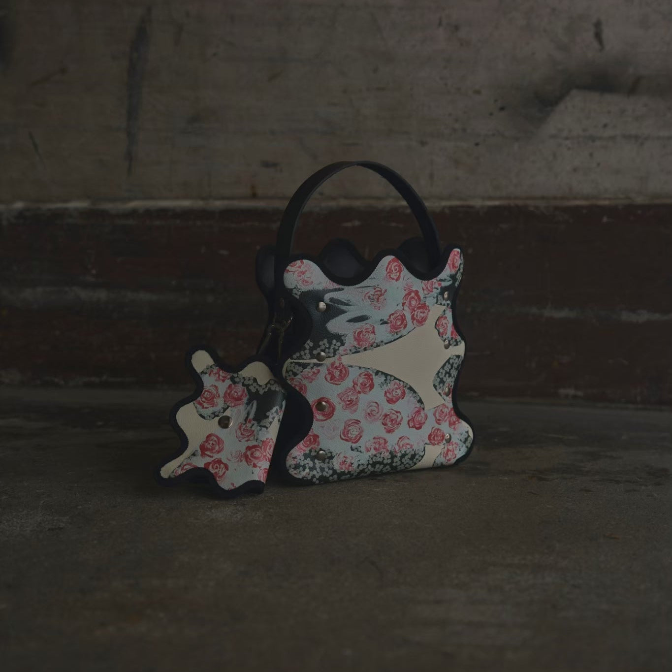 nori enomotoのウェーブと、ドレスの曲線的なシルエットと流動的な絵具の交わりが美しいアイテム。エレガントなドレスの美しさを引き立てるブラックとのコントラストが、洗練されたモダンな印象を演出しています。