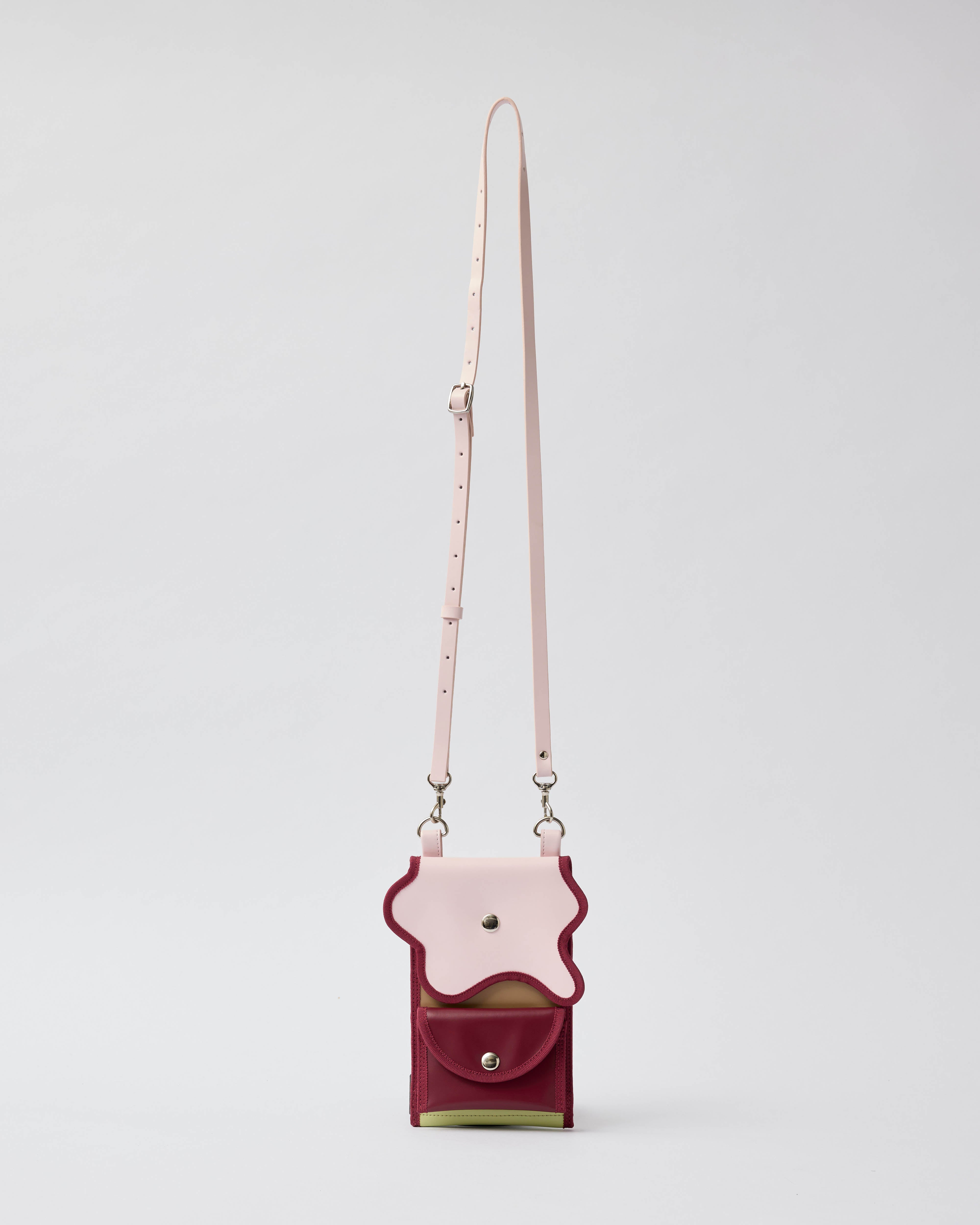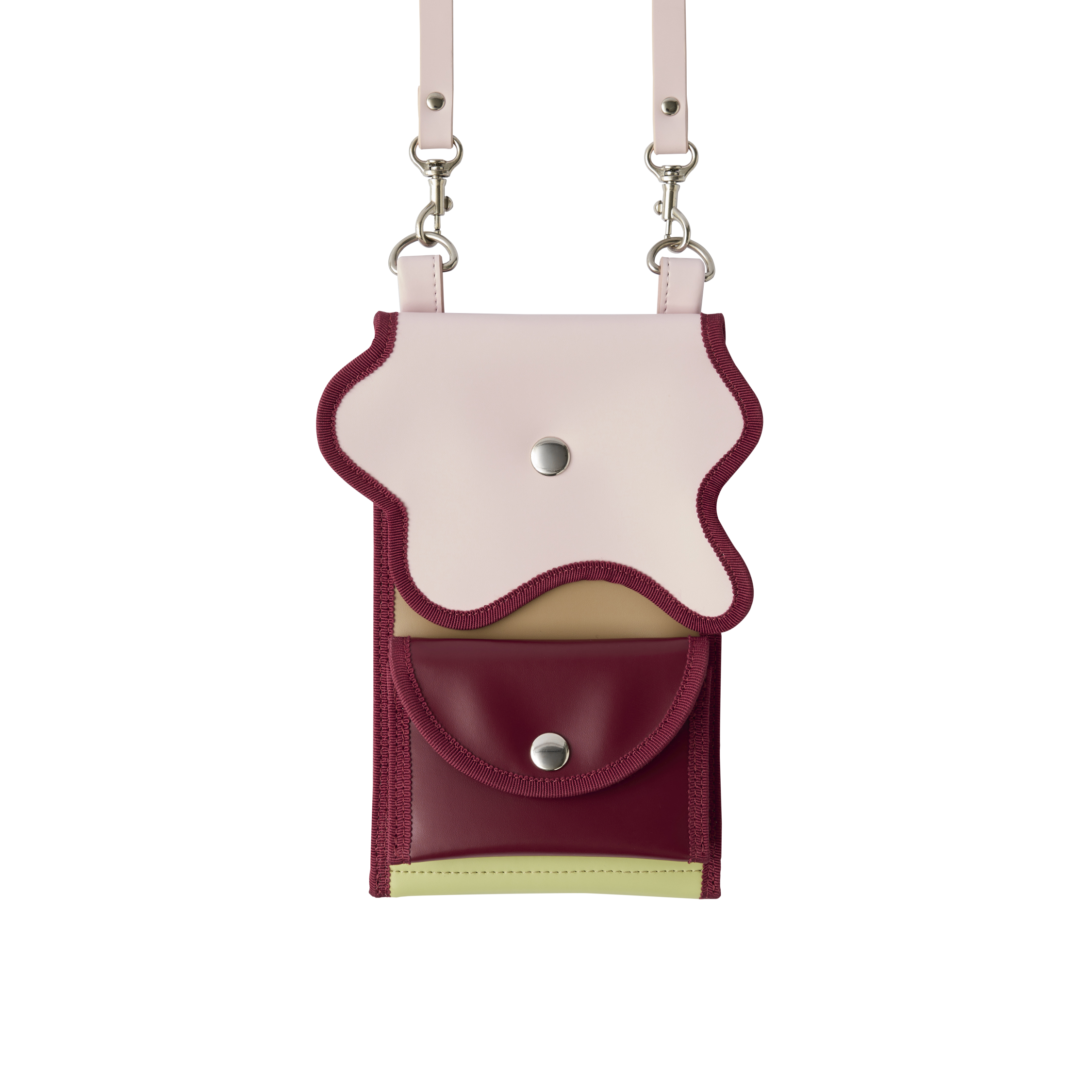 broken wave phone pocket G / powder pink × bordeaux × pistachio